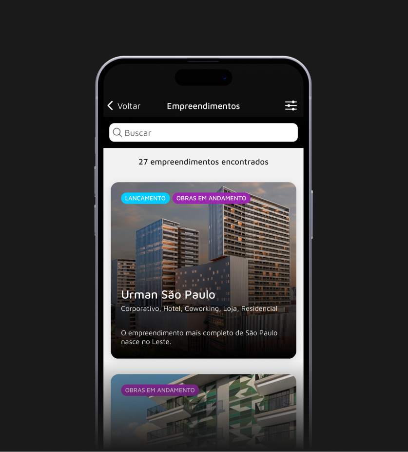 A Porte Engenharia e Urbanismo precisava de uma solução digital que unificasse a comunicação com corretores autônomos, imobiliárias parceiras e sua equipe interna de consultores. O desafio era criar uma ferramenta acessível e funcional que otimizasse o processo comercial, centralizasse informações e facilitasse a interação entre os profissionais e os interessados nos empreendimentos.
