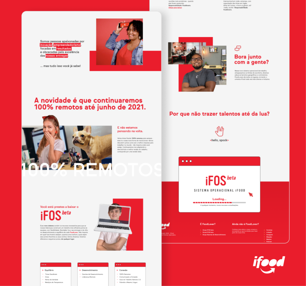O hotsite do iFOS Beta teve papel importante na comunicação interna e externa do iFood sobre a extensão do trabalho remoto. Com um tom próximo e uma apresentação interativa, o projeto ajudou a posicionar o iFood como uma empresa transparente, adaptável e conectada com o futuro do trabalho.