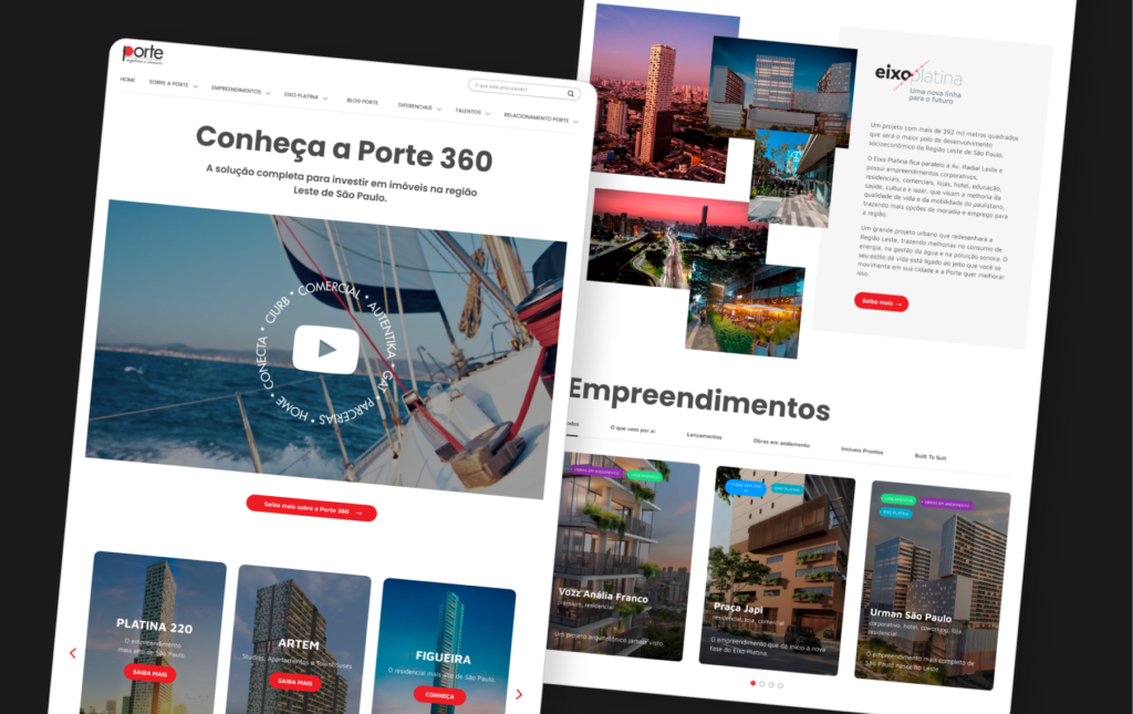 Criamos o portal da Porte com foco em sofisticação, fluidez e valorização dos empreendimentos da marca.